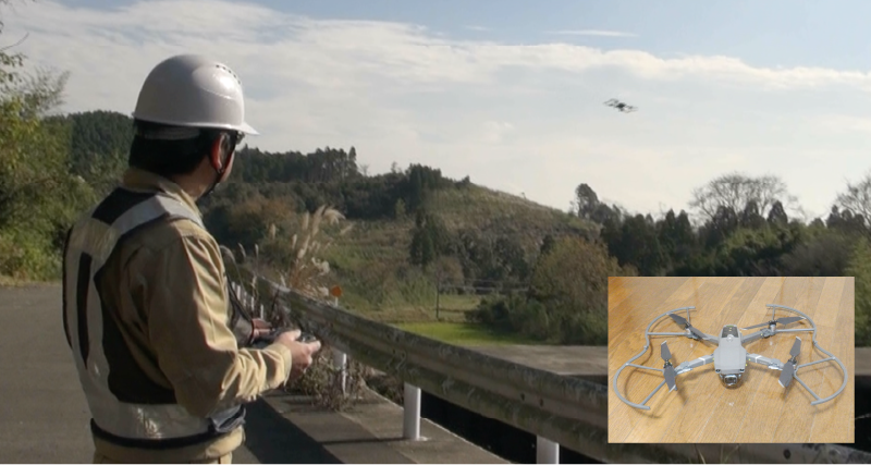 「UAVを用いた公共測量マニュアル」に順じ、UAVにより点群データ取得を行い、着工前の地形把握を行います。