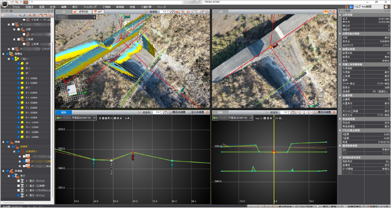 3次元モデルを作成することで、断面を指定するだけで、縦横断図を自動で作成することができます。