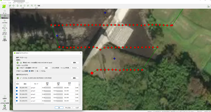 UAV(ドローン)等を利用して撮影した写真(画像)データから、3次元形状を復元する写真解析ソフトウェア(SFMソフト)で、点群データを取得することができます。